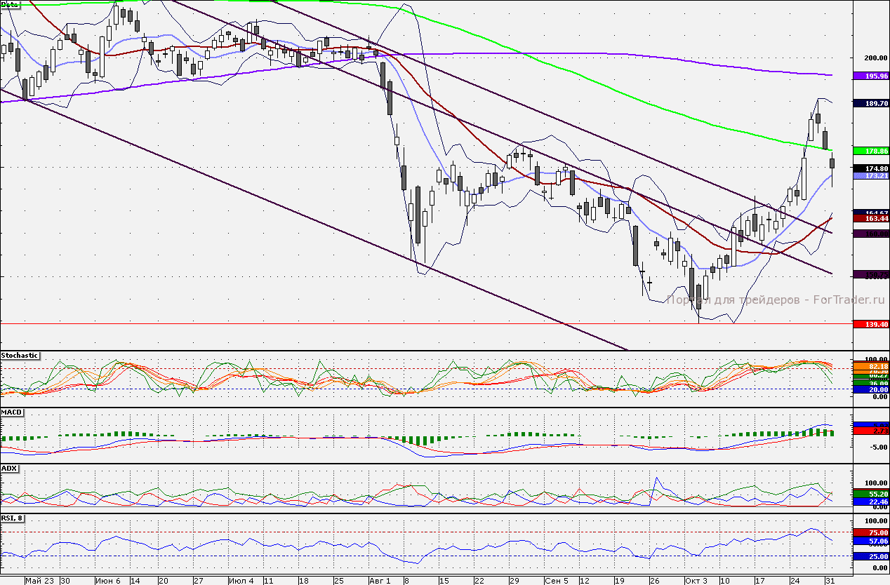 Акции компании закрылись вблизи 175,00 руб., что может привести к покупкам сегодня. Рост цен на нефть также располагает к повышению. Сопротивлением является 100-дневная скользящая средняя 178,86 руб. Поддержкой является 10-дневная скользящая средняя 173,21 руб.