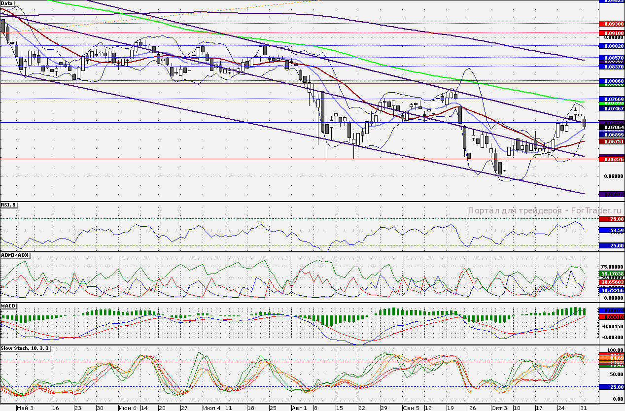 Акции ВТБ в случае появления негативных сигналов могут вновь протестировать психологический уровень в виде 7 коп, где проходит 10-дневная скользящая средняя. Сопротивлением является 7,200 коп. Привлекательным уровнем для закрытия «лонгов» является 7,300 коп.