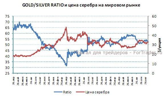 Цены на платину продолжили коррекцию вниз до уровня 1565$. Спрэд между золотом и платиной вновь составляет 150$, отношение золото/платина выросло до 1,10.