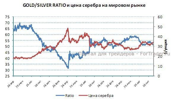 Цены на платину показали в пятницу высокие темпы роста, преодолев сразу несколько значимых уровней сопротивления 1600$, 1620$ и 1625$. В настоящее время наблюдается откат вниз к уровню 1600$, но при сохранении динамики цен выше данного уровня возможно движение вверх до уровня 1700$. Спрэд между золотом и платиной составляет 141$, отношение золото/платина выросло до 1,09. Дефицит баланса мирового рынка платины благоприятно влияет на ценовую динамику.