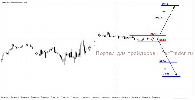 В пятницу, 2 марта в ходе азиатской торговой сессии стоимости золота и серебра торговались в узком диапазоне на фоне отсутствия четких ориентиров в преддверии выходных. Однако котировки драгоценных металлов остаются под давлением после того как председатель ФРС США Бернанке умерил ожидания инвесторов относительно начало очередного этапа стимулирования экономики. Мы полагаем, что в случае снижения стоимости данных активов, низкие цены будут привлекать все больше физических покупок, поддерживая котировки драгоценных металлов. Между тем, дополнительную поддержку котировки серебра будут получать в районе двухсотдневной скользящей средней расположенной на уровне 34,90 долларов США за тройскую унцию.