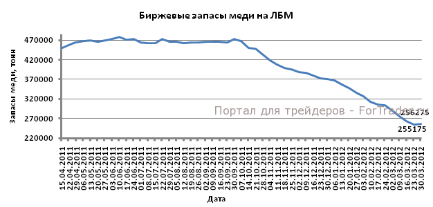 Стоимость меди на фьючерсном рынке на прошлой неделе выросла на 0,43% до 3,8235 долларов США за фунт меди. Однако котировки красного металла продолжают двигаться в боковом тренде. Основной позитивный импульс котировки меди получили в понедельник, 26 марта, после того, как председатель ФРС США господина Бернанке выразил неуверенность относительно перспектив восстановления рынка труда и отметил, что текущая сверхмягкая денежно-кредитная политика пока должна оставаться таковой.