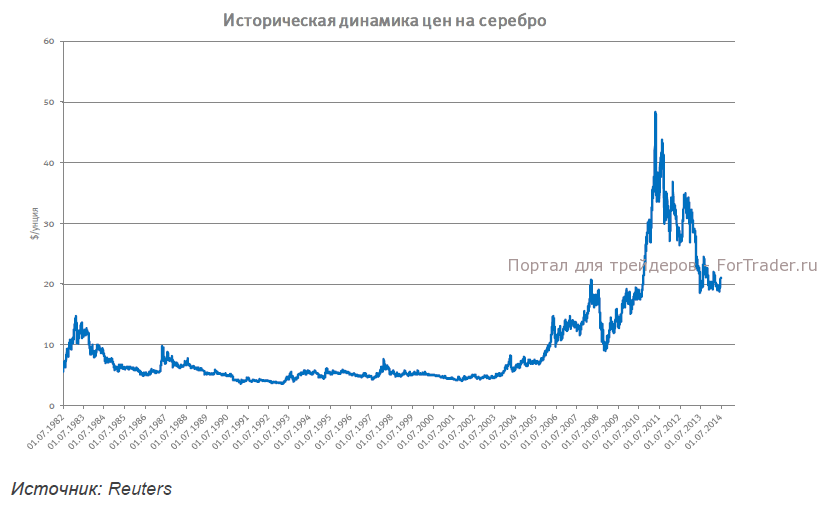 Цены на серебро вырастали до уровня 21,25$ под влиянием роста стоимости золота, но вновь откорректировались вниз до уровня 21$.