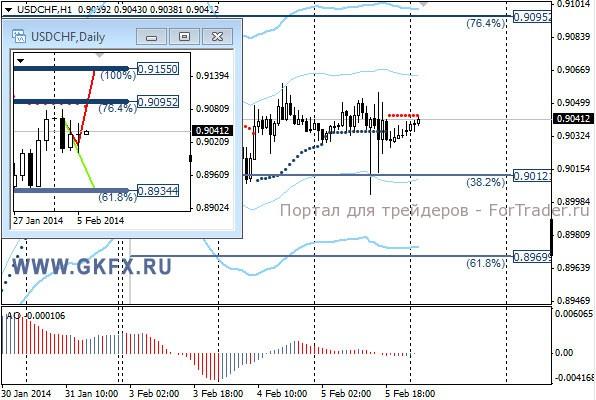 Пара USDCHF не пошла в сторону роста, но и снижаться не горит желанием, поэтому продолжаем ожидать роста пары. Сделка по рекомендации не исполнилась и остается прежней. На эту неделю традиционно рассматриваю два варианта возможного движения цены, основной красный и альтернативный зеленый. Значимые уровни на сегодня отмечены на часовом графике. Индикатор АО находится у нуля, указывая на неопределенность. Индикатор тренда указывает на снижение. Преодоление 0,9060 позволит войти в покупки с целями 0,9080 и 0,9095.