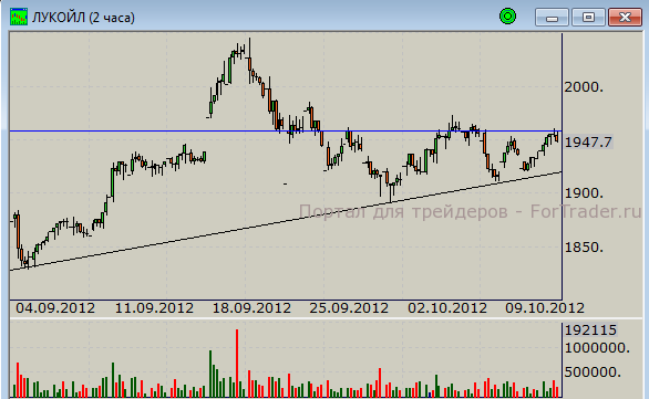 Акции «Лукойла» рассмотрим подробнее. Накануне стало известно, что правительство Республики Ирак одобрило контракт на геологоразведку, разработку и добычу на Блоке 10, расположенном на юге страны, в провинциях Ди-Кар и Мутанна, говорится в сообщении «Лукойла». «В ходе разработки Блока 10 будет достигнут синергетический эффект ввиду того, что данный участок расположен всего в100 кмот разрабатываемого «ЛУКОЙЛ Оверсиз» месторождения Западная Курна-2″, — подчеркивает российская компания. Вчера акции «Лукойла» смотрелись лучше широкого рынка, поддержку которым оказывают высокие цены на нефть, а также последние новости компании. Ниже представлен двухчасовой график котировок по состоянию на закрытие 09 октября.