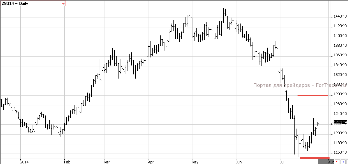 Рынок соевых бобов стал более чувствителен к погоде. Особенность развития этой культуры заключается в том, что посевная проходит на месяц позже, чем у кукурузы. Сбор урожая также осуществляется на 1-1.5 месяца позже. Таким образом, урожай соевых бобов остается зависимым от погоды в августе. Засуха или заморозки могут серьезно повредить урожай. В это время года трейдеры уделяют этому фактору пристальное внимание. Поэтому небольшие ралли вверх вполне вероятны.