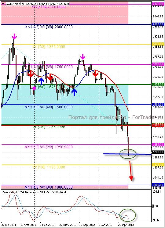 Продаем золото при пробитии сильного промежуточного уровня поддержки 1200.00 малыми объемами, при этом наращиваем позиции в случае снижения пары ниже отметки 1150.00 с первой целью 1100.00, и более дальней целью 1000.00.