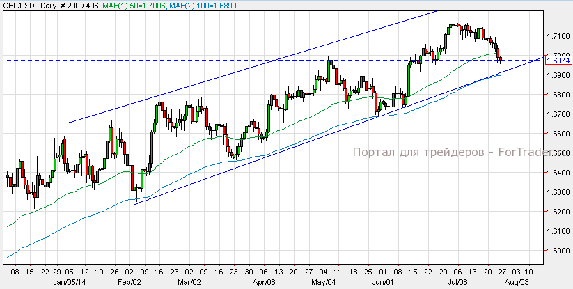 Фунт упал против основных валют после выхода объема розничных продаж, который оказался хуже прогнозов. Согласно техническому анализу дневного графика, пара GBP/USD торгуется в канале между уровнем поддержки 1.6900 и уровнем сопротивления 1.7300. Пара продолжит свой восходящий импульс при удержании на уровне поддержки, а прорыв ниже данного уровня вызовет падение пары к отметке 1.6800. Сегодня не ожидается выхода важных экономических новостей по паре фунт/доллар.