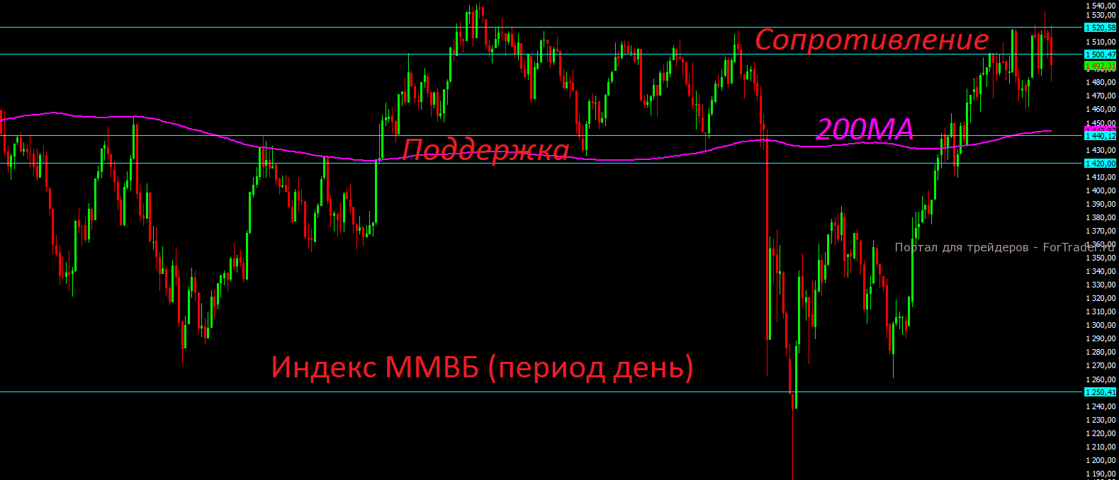 С технической точки зрения, по российскому рублёвому индексу ММВБ мы вчера получили подтверждение разворота вниз, хотя ещё один заход в диапазон 1500-1520 пунктов исключать не стоит. Рекомендация пока прежняя, выходить из акций и готовиться к коррекции на 2-3 недели. После дивидендных отсечек на следующей неделе индекс ММВБ может достичь зоны поддержки 1420-1440 пунктов.