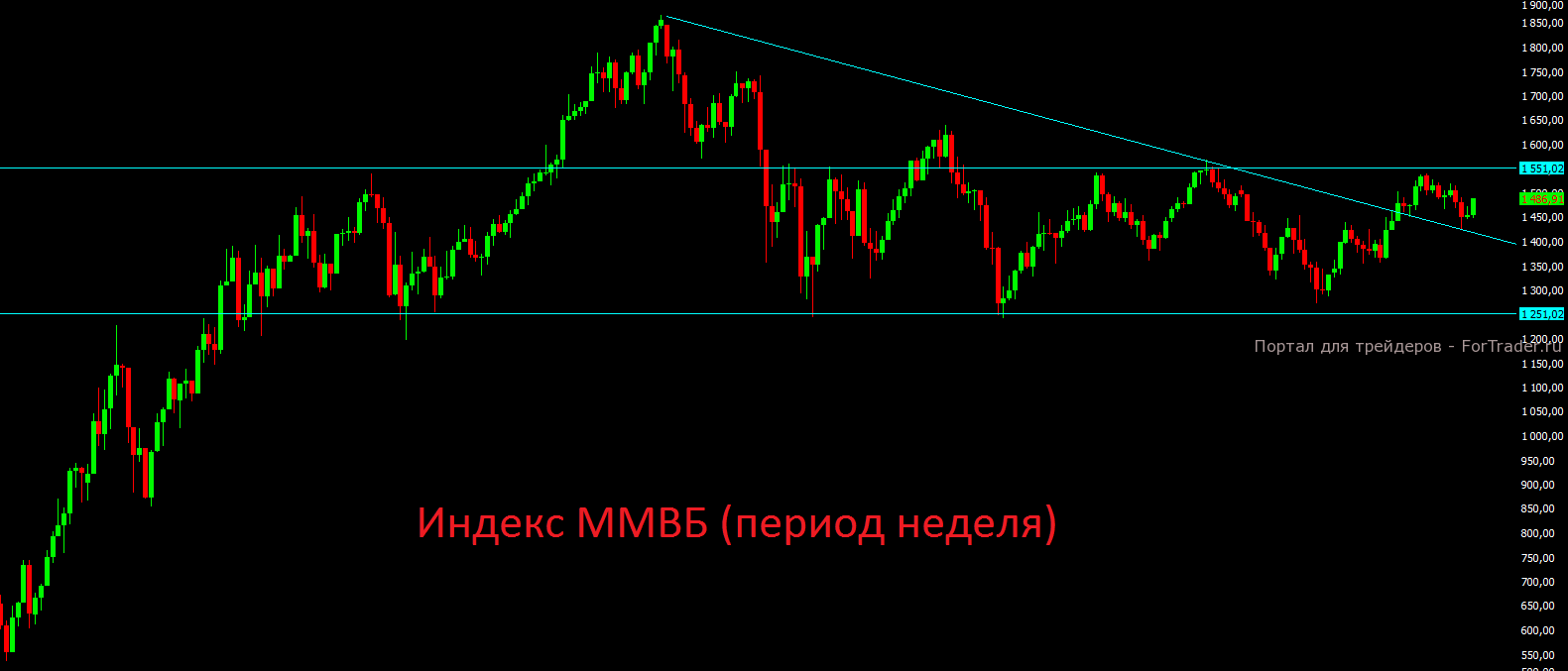Ровно две недели назад индекс ММВБ нашёл поддержку вблизи 200-дневной скользящей средней и теперь не только на дневном, но и на недельном графике рисуется разворотная формация. Также стоит отметить, что тест 200-дневной скользящей на дневном графике совпал с сильной поддержкой на недельном графике, которая образовалась после выхода цены вверх из 3-х летнего понижательного тренда. Потенциал возможного роста на оставшиеся две недели до конца текущего года мы оцениваем в 4% до отметки 1550 пунктов, которая уже три года подряд является главным камнем преткновения для инвесторов. Только в случае закрытия 2-х недель подряд выше данной отметки можно будет утверждать о восстановлении российского фондового рынка до более высоких значений. С 25декабря многие мировые площадки будут закрыты, в связи с празднованием Рождества, поэтому активность в России начнёт также спадать и рассчитывать можно будет лишь на существенный рост в отдельных историях второго эшелона. Цены на нефть на фоне вчерашних данных о сокращении запасов в США на 2,941 млн. баррелей вновь закрепились выше отметки в 109 долларов, что является ещё одним позитивным фактором для российских инвесторов.