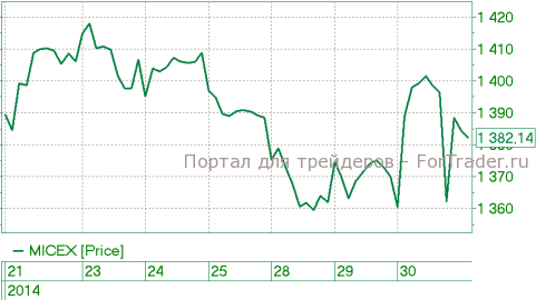 Рынок закрылся на положительной территории. После выхода информации о санкциях основные бумаги росли в пределах 2%, Индекс ММВБ поднимался выше 1400 п. Укреплению способствовали данные по ВВП США, которые оказались лучше прогноза. Лидерами роста стали акции Северстали (CHMF:RX 331,3 3,53%) на слухах о возможном участии компании в разделе Мечела (MTLR:RX 39,4 1,55%). Хуже рынка выглядели бумаги Магнита (MGNT:RX 9240 1,30%) и ВТБ (VTBR:RX 0,00396 1,30%). Однако после технического сбоя на Московской бирже (MOEX:RX 58,00 2,67%) и на фоне коррекции на американском рынке, рост прекратился, а цены пошли вниз.