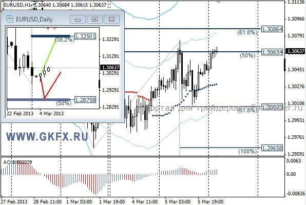 Пара EURUSD умеренно растет, хотя вчера движения вниз были довольно резкими, повышательная динамика в итоге преобладала за счет роста фондового рынка. Мои ожидания снижения пары к минимумам пятницы не оправдались. Раз наметилась повышательная динамика, сегодня пара может продолжить рост до 1,3100, если данные по ВВП не подведут. На этой неделе рассматриваю традиционно два варианта возможного движения цены, основной красный и альтернативный зеленый, склоняюсь к красному. Значимые уровни на сегодня отмечены на часовом графике. Индикатор АО в положительной зоне и растет, указывая на желание пары, расти. Индикатор тренда указывает на рост. Buy 1.3045 со стопом 1,3025. Цель 1,3085.
