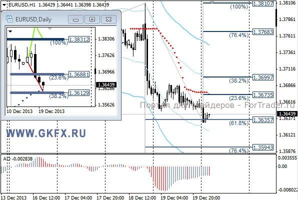 Пара EURUSD соответствовала ожиданиям и возвращалась в район 1,3670/90 для исполнения сделки на продажу. Две цели уже были достигнуты, стоп стоит на уровне безубытка. Сегодня особо значимой статистики по Еврозоне не ожидается, поэтому внимание будет направлено на американскую статистику. Будем надеяться, что она будет лучше, чем в четверг и евро продолжит снижение. На эту неделю традиционно рассматриваю два варианта возможного движения цены, основной красный и альтернативный зеленый. Значимые уровни на сегодня отмечены на часовом графике. Индикатор АО находится в отрицательной зоне и растет, указывая на коррекцию перед возможным продолжением снижения. Индикатор тренда указывает на снижение. Держим продажи от 1,3670/90 с целью 1,3615.
