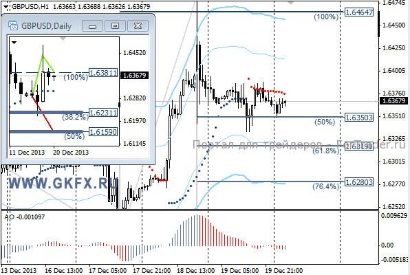 Пара GBPUSD в соответствии с ожиданиями торговалась в небольшом диапазоне не желая снижаться. Сегодня ожидаются важные данные по Великобритании и США, поэтому динамика может иметь разнонаправленный характер. Если данные по США окажутся сильными, то пара на американских торгах может немного снизится. На этой неделе по традиции рассматриваю два варианта возможного движения цены, основной красный и альтернативный зеленый. Значимые уровни на сегодня отмечены на часовом графике. Индикатор АО находится в отрицательной зоне и снижается, указывая на желание пары двигаться вниз в данное время. Индикатор тренда указывает на снижение. Преодоление 1,6330 позволит продать с целями 1,6310 и 1,6290.