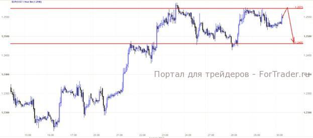 Пара EUR/USD продолжает консолидироваться в торговом диапазоне 1,2460-1,2575 на фоне затухания активности игроков в преддверии встречи в Джексон Хоуле. На наш взгляд, лучше пока держаться вне рынка и дождаться более направленного движения. Отметим, что понижательный потенциал фигуры «клин» все еще сохраняется. Пока евро укрепляется в паре с долларом, но сопротивление 1,2576 совсем близко, и, учитывая то, что на часовом таймфрейме отмечается перекупленность, пара может отскочить вниз от линии сопротивления: