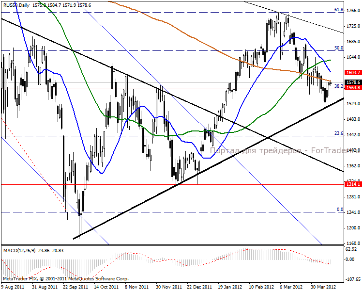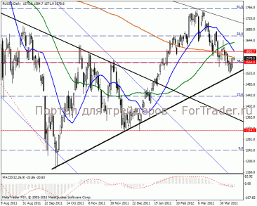 На дневном графике ожидаем подход к уровню 1664 пунктов.MACD указывает на укрепление в ближайшее время к отметке 1603 пунктов.