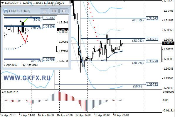 Пара EURUSD торговалась  с некоторым повышением, но без особого желания расти. Сегодня можно попробовать вновь продать в расчете на выплеск вверх, после которого ожидаю снижение. По вчерашней рекомендации сработал безубыток, но цена цель выполнила. Рынок очень сложный на этой неделе, день вверх, день вниз, поэтому взять прибыль тяжело. Не забываем ставить безубыток при первой же возможности. На эту неделю традиционно рассматриваю два варианта возможного движения цены, основной красный и альтернативный зеленый. Значимые уровни на сегодня отмечены на часовом графике. Индикатор АО находится в положительной зоне и растет, указывая на желание пары двигаться вверх. Индикатор тренда указывает на рост. Вне рынка. Sell от 1,3100 или выше со стопом 1,3120. Цель — 1,3030.