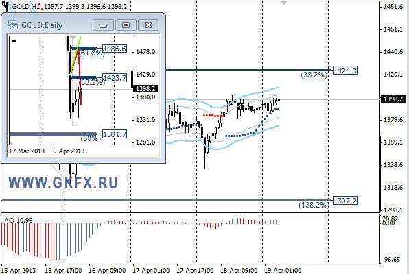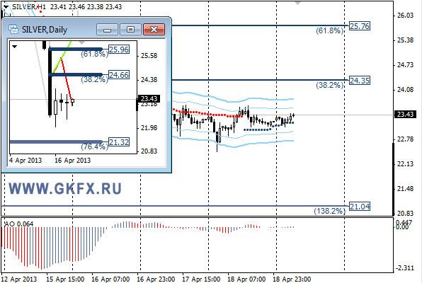 Цены на золото остановили снижение и вернулись к верхней границе диапазона, в котором цена установилась после резкого падения. Мой расчет оказался неверным, в результате по рекомендации сработал стоп -70 пунктов. Сегодня от рекомендаций воздержусь так как ситуация двоякая. Традиционно делаю два варианта движения цены на неделю, основной красный и альтернативный зеленый. Значимые уровни на сегодня отмечены на часовом графике. Индикатор АО находится в положительной зоне и растет, указывая на желание пары двигаться вверх. Индикатор тренда указывает на рост. Вне рынка.