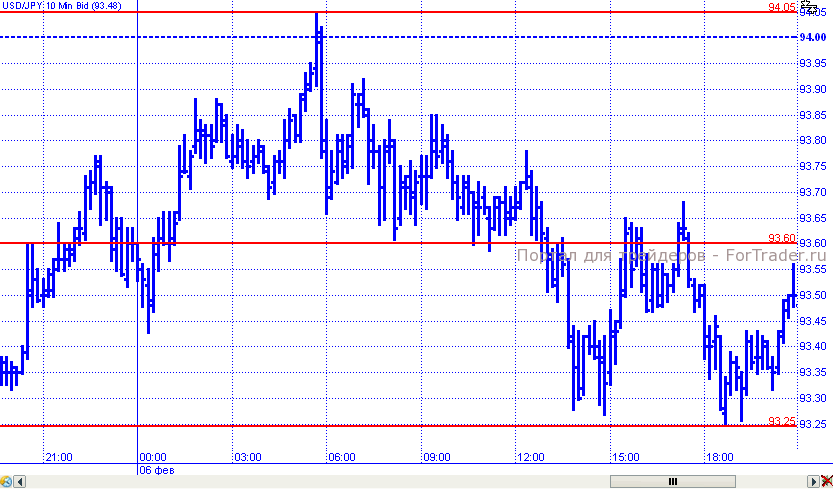 USD/JPY, отличие от европейских валют, хотя бы попыталась пробить ближайшее сопротивление на фоне резкого роста Nikkei во время азиатской сессии. Пара открыла день на 93,53, достигла максимума 94,06, но не смогла удержать позиции и скатилась к 93,40 к закрытию торговых суток.