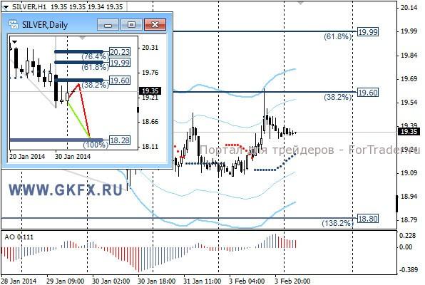 Цены на серебро лишь немного обновили пятничные максимумы. Это говорит о медвежьем настрое. Торги по серебру могут находиться сегодня в пределах 19,10-19,50. Традиционно делаю два варианта движения цены на неделю, основной красный и альтернативный зеленый. Значимые уровни на сегодня отмечены на часовом графике. Индикатор АО находится в положительной зоне и снижается, указывая на коррекцию перед возможным продолжением роста. Индикатор тренда указывает на рост. Вне рынка.