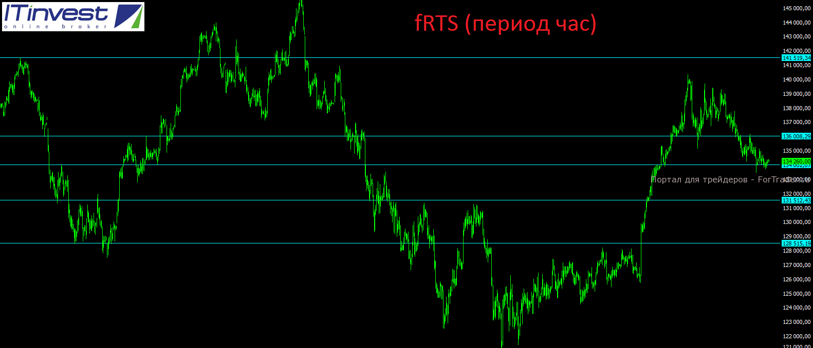 По фьючеру на индекс РТС вновь сегодня будут актуальны вчерашние уровни. Поддержкой в течение дня будет выступать уровень 134000 пунктов, а ближайшим и важным сопротивлением выступает отметка 136000 пунктов.