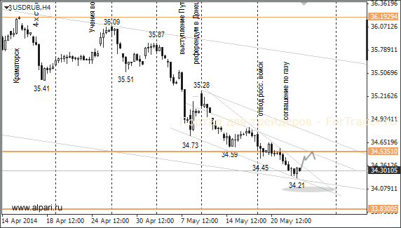 У долларовых «быков» будет окно с 10 мск до 13 мск, чтобы пробить поддержку 1,3630 в паре евро/доллар. Если 1,3630 не будет пробит, есть риски перед выходными отскочить и полностью перекрыть вчерашнее падение евро. В этом случае рост евро против рубля ускорится. При восходящем движении и пробое уровня 34,35 курс доллара возьмёт курс на 34,50. Для евро коррекционная цель находится на отметке 47,15.