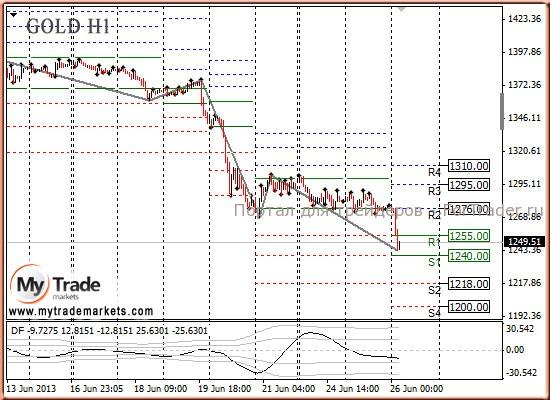 Как я писал вчера что, если снижение возобновится и цена принизит пятничный минимум, то цель его будет находиться в районе 1255,00. На самом деле на текущий момент цена достигала отметки 1244,00.