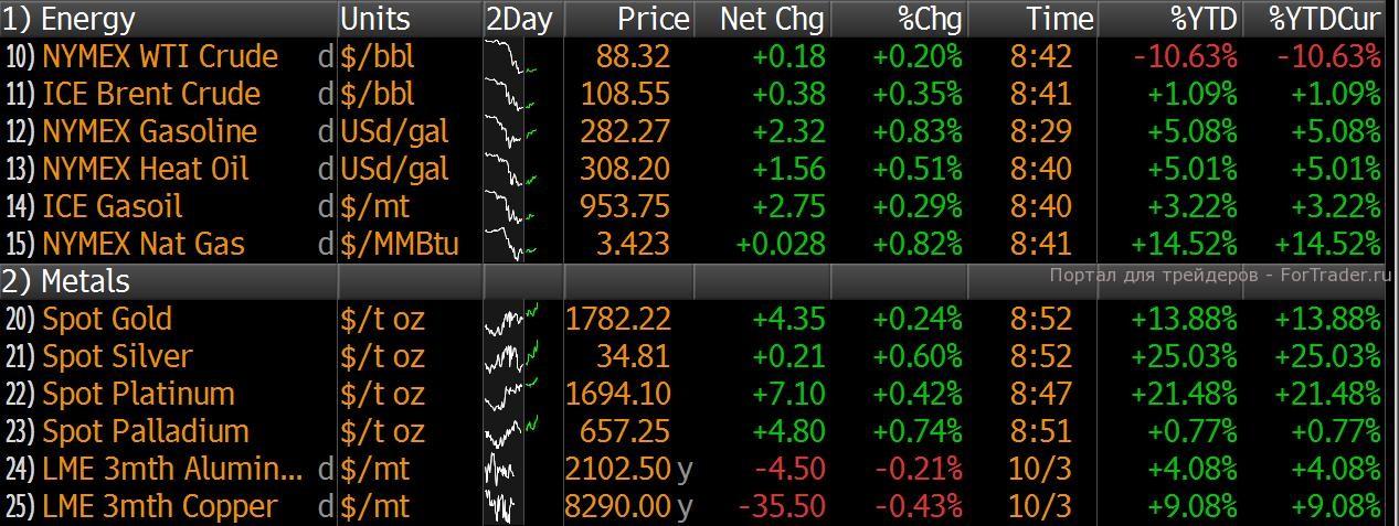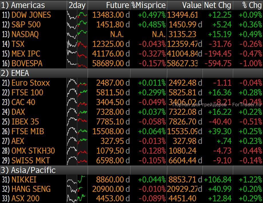 Значения мировых индексов и фьючерсов на них.