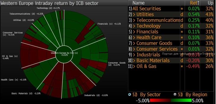 Вчерашнее закрытие торгов в Европе (по секторам)