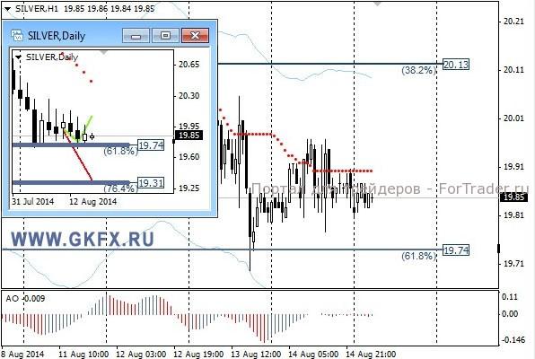 Цены на серебро не отработали сформированную модель для продаж как надо, и следует прикрыть позицию на продажу, если ее не закрыло по стопу. Традиционно делаю два варианта движения цены на неделю, основной красный и альтернативный зеленый. Значимые уровни на сегодня отмечены на часовом графике. Индикатор АО находится у нуля, указывая на неопределенность. Индикатор тренда указывает на рост. Вне рынка.
