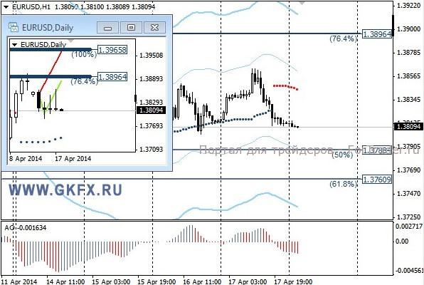 Пара EURUSD поднималась до первой цели по рекомендации, которая находилась на 1,3855. Затем стоп можно было перенести на уровень открытия сделки 1,3835. В итоге на американских торгах стоп сработал на фоне сильных данных по США, когда доллар пошел в рост. Сегодня значительных движений от рынка ожидать не стоит, так как во многих крупнейших экономиках праздник и активность на рынке будет низка. На эту неделю традиционно рассматриваю два варианта возможного движения цены, основной красный и альтернативный зеленый. Значимые уровни на сегодня отмечены на часовом графике. Индикатор АО находится в отрицательной зоне и снижается, указывая на желание пары двигаться вниз в данное время. Индикатор тренда указывает на снижение. Вне рынка.