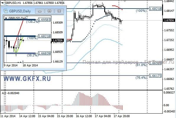 Пара GBPUSD вчера утром произвела попытку преодоления важного уровня 1,6820, но так как это была азиатская сессия, то в истинности пробоя я сомневался, что позднее и подтвердилось. Сегодня значительных движений от рынка ожидать не стоит, так как во многих крупнейших экономиках праздник и активность на рынке будет низка. На эту неделю традиционно рассматриваю два варианта возможного движения цены, основной красный и альтернативный зеленый. Значимые уровни на сегодня отмечены на часовом графике. Индикатор АО находится в отрицательной зоне и снижается, указывая на желание пары двигаться вниз в данное время. Индикатор тренда указывает на снижение. Вне рынка.
