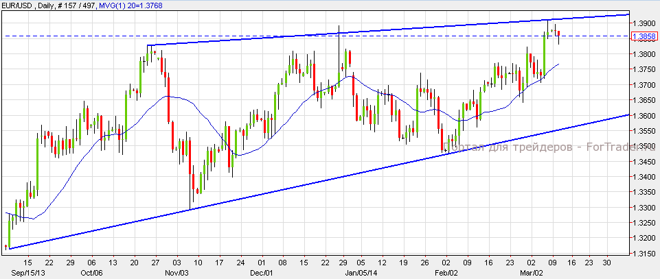 Евро снизился против доллара после выхода Торгового баланса Германии, который не оправдал прогнозов и составил 17.2 млрд против 19.3 млрд. Согласно техническому анализу дневного графика, пара евро/доллар США торгуется в восходящем канале около сильного уровня сопротивления 1.3900. Прорыв уровня сопротивления приведет пару к отметке 1.4000. Однако, обратная динамика вновь приведет пару к отметке 1.3800. Согласно прогнозам, Объем обрабатывающей промышленности составит 0.6% против 0.7% ранее.