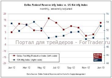 Никто не назвал бы экономическую активность в штате Техас надежным индикатором макроэкономического тренда в США. Но трудно не заметить, что в последнее время индекс производственной активности Далласа отражал в себе изменения производственного индекса ISM – популярного измерительного инструмента экономического пульса США. На протяжении последних четырех месяцев эти два индекса двигались фактически в унисон. Уже один только этот факт придает значимости февральскому отчету, так как он может сформировать ожидания в отношении пятничного отчета об индексе ISM.