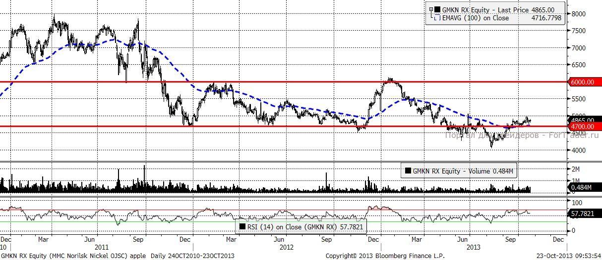 По акциям ГМК Норильский никель попытка «медведей» пробить нижние границы среднесрочного канала не увенчалась успехом. Цены вновь вернулись в диапазон 6000-4700 руб. Хорошие статистические данные из Китая внушают надежду на восстановление спроса, что сразу закладывается в цену игроками. Технически, преодоление отметки 5000 руб. пополнит ряды покупателей этой бумаги, что способно, на фоне общего положительного фона в мире, загнать котировки на отметку 6000 руб. за акцию.