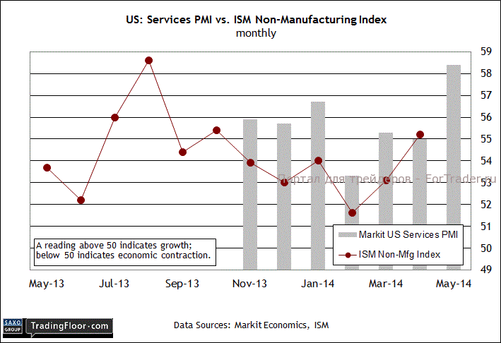 Обращаем ваше внимание на то, что сегодня также выходит конкурирующий индекс активности в секторе услуг США от Markit. Публикация запланирована на 13:45 GMT, за 15 минут до выхода отчета ISM. Напомним, что предварительная оценка от Markit была довольно высокой, а значит, у индекса ISM есть все шансы превзойти прогнозы аналитиков.
