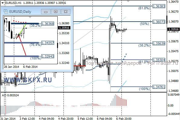 Пара EURUSD резко выросла на решении ЕЦБ не предпринимать действий по дальнейшему смягчению политики. Это решение стало неожиданностью, так как многие ожидали, что ЕЦБ продолжит смягчать денежно-кредитную политику. Дальнейшая динамика валют будет зависеть от сегодняшних данных по новым рабочим местам в США. Учитывая, что в прошлый месяц были очень слабые данные, рынок интересует, продолжится ли такая динамика или это единичный случай в восстановлении экономики. По рекомендации сделка не исполнилась, так как цена только коснулась цены открытия и даже на минутном графике видно, что никакого преодоления уровня не было. На эту неделю традиционно рассматриваю два варианта возможного движения цены, основной красный и альтернативный зеленый. Значимые уровни на сегодня отмечены на часовом графике. Индикатор АО находится в положительной зоне и снижается, указывая на коррекцию перед возможным продолжением роста. Индикатор тренда указывает на рост. Под сегодняшние данные по США рекомендаций не даю.