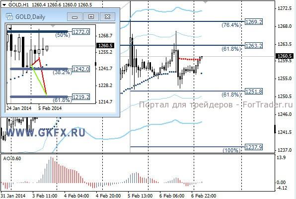 Цены на золото продолжили оставаться выше 1250,0, хотя попытки подойти к этому уровню были. Сегодняшняя статистика по США задаст направление золоту на ближайшую неделю. Сильные данные по рынку труда США столкнут цены на золото ниже 1250,0. Слабые данные могут направить цены на золото вверх, но ненадолго, так как основной тренд вниз. Сделка по вчерашней рекомендации не исполнилась. Традиционно делаю два варианта движения цены на неделю, основной красный и альтернативный зеленый. Значимые уровни на сегодня отмечены на часовом графике. Индикатор АО находится у нуля, указывая на неопределенность. Индикатор тренда указывает на рост. Под сегодняшние данные по США рекомендаций не даю.
