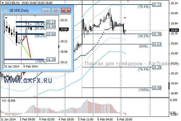 Цены на серебро демонстрируют явное нежелание двигаться вверх, но все сегодня будет зависеть от данных по рынку труда США. Сделка по вчерашней рекомендации не исполнилась. Традиционно делаю два варианта движения цены на неделю, основной красный и альтернативный зеленый. Значимые уровни на сегодня отмечены на часовом графике. Индикатор АО находится у нуля, указывая на неопределенность. Индикатор тренда указывает на снижение. Под сегодняшние данные по США рекомендаций не даю.