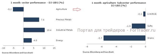 Сельскохозяйственный сектор и, в особенности, рынок зерна оказались под сильным давлением продавцов, поскольку все поддерживающие факторы, образовавшиеся после тяжелого периода роста сельскохозяйственных культур в США и России, уже учтены в ценах, и теперь внимание игроков переключилось на предстоящий вегетационный период в Южной Америке и Австралии.