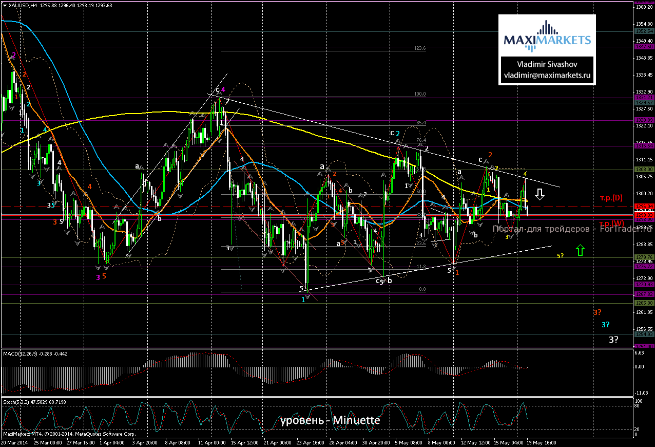 На вчерашних торгах металлы снова продемонстрировали волатильное разнонаправленное движение, сначала достигнув линии нисходящего тренда от 14 апреля текущего года на ценовом уровне 1305.34$ за унцию, а затем, растеряв все достижения и вернувшись к пятничному уровню закрытия торгов 1293.51$ за тройскую унцию.