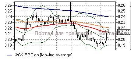 ФСК ЕЭС (+0,23%) – акции после пятничного взлета сегодня поднялись в район линии EMA100 дневного графика (0,22 руб), у которой приостановили восходящее движение. Технические индикаторы дают положительные сигналы и не противоречат развитию роста бумаг, говоря также о наличии потенциала роста до входа в зону перекупленности. «Быкам», однако, лучше воздержаться от открытия новых позиций до закрепления выше 0,22 руб ввиду опасности фиксации полученной ранее прибыли.