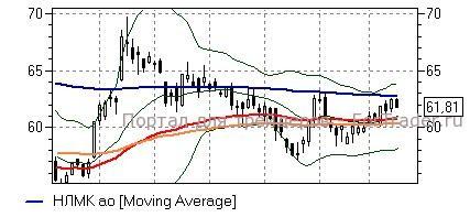 НЛМК (-1,3%) – акции после закрепления выше средней полосы Боллинжера и «долгих» скользящих средних дневного графика (60,4-60,5 руб) приостановили рост у последнего важного сопротивления – линии EMA200 (62,8 руб), до пробития которого стоит воздержаться от новых покупок ввиду опасности фиксации игроками полученной прибыли и возвращения в район 60,5 руб. Показания дневного графика в целом не противоречат развитию повышения, но «быкам» стоит сохранять осторожность.