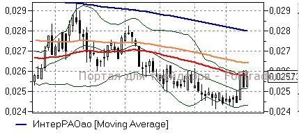 ИнтерРАО (+1,71%) – акции ещё на прошлой неделе поднялись к линии EMA55 дневного графика (0,0258 руб), у которой приостановили восходящее движение. Технические индикаторы в целом не препятствуют развитию роста, однако, предупреждают и о неуверенности «быков». До закрепления выше указанного значения с открытием новых «длинных» позиций стоит подождать — бумаги вполне могут вернуться в район средней полосы Боллинжера (0,0250 руб). При обратном сценарии следующей целью движения акций стала бы линия EMA100 (0,0264 руб).
