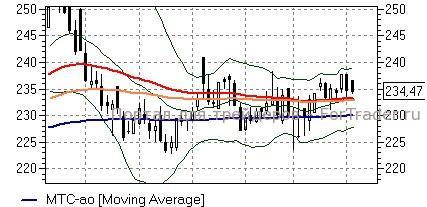 МТС (-0,11%) – акции после вчерашнего взлета скорректировались в район ряда «долгих» скользящих средних дневного графика и средней полосы Боллинжера (233 руб), до пробития которых стоит удерживать «длинные» позиции с расчетом на возобновление роста. Технические индикаторы говорят об умеренных силах «быков» и предупреждают об опасности развития коррекционного снижения, однако, наиболее рискованным игрокам можно сыграть на отскок от важных поддержек.