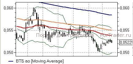 ВТБ (-0,11%) – акции в ходе восстановления с локальных минимумов приостановили повышение у средней полосы Боллинжера дневного графика (5,28 коп), до закрепления выше которой стоит воздержаться от открытия «длинных» позиций ввиду опасности возвращения бумаг к нижней полосе Боллинжера (5 коп). Технические индикаторы дают умеренно положительные сигналы, однако, «быкам» стоит помнить, что даже в случае преодоления указанного сопротивления они вскоре столкнутся с «долгими» скользящими средними (5,38-5,50 коп), пробитие которых потребует наличия значимых факторов роста.