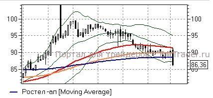 Ростелеком ап (-4,2%) – акции после консолидации в районе «долгих» скользящих средних дневного графика и средней полосы Боллинжера (88,7-91,4 руб) сегодня опустились ниже указанных отметок и подошли вплотную к зоне перепроданности. Технические индикаторы на данный момент не дают знаков грядущего разворота настроений. Сигналом, указывающим на возможность коррекции от достигнутых минимумов был бы отскок бумаг от какой-либо из ближайших поддержек, однако, на данный момент опасность развития снижения высока.