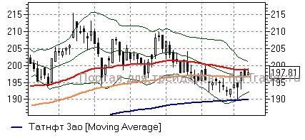 Татнефть ао (+0,47%) – акции сегодня тестируют на прочность последнее важное сопротивление дневного графика – линию EMA55 (198,7 руб), лишь при пробитии которой можно будет рассчитывать на развитие роста ближе к верхней полосе Боллинжера и сопротивлению 202 руб. Технические индикаторы в целом не противоречат продолжению повышения, но предупреждают, что силы «быков» невелики и поэтому игрокам внимательно стоит следить за способностью бумаг закрепиться выше важных сопротивлений, особенно ввиду близости психологически важного значения 200 руб.