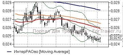 ИнтерРАО (+0,69%) – акции в последние дни двигаются в достаточно узком диапазоне значений, ограниченном отметками 2,44-2,50 коп. Недалеко от его верхней границы расположена также средняя полоса Боллинжера дневного графика (2,51 коп) лишь при закреплении выше которой стоит рассчитывать на развитие повышения в район недавних локальных максимумов, а также линии EMA55 (2,58-2,62 коп). При обратном сценарии бумаги вполне могут обновить минимальные значения.