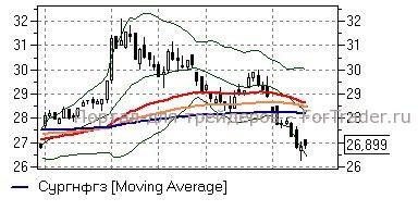 МТС (-1,14%) – акции последние несколько дней торгуются вблизи средней полосы Боллинжера дневного графика (274 руб) и, несмотря на попытки развить снижение с годовых максимумов, «быки» все ещё стараются отыграть свои позиции, периодически поднимая бумаги выше важной линии. До закрепления по итогам двух дней ниже 274 руб наиболее рискованным игрокам стоит сохранять «длинные» позиции, однако, помнить об опасности ускорения нисходящего движения при неблагоприятном сценарии.